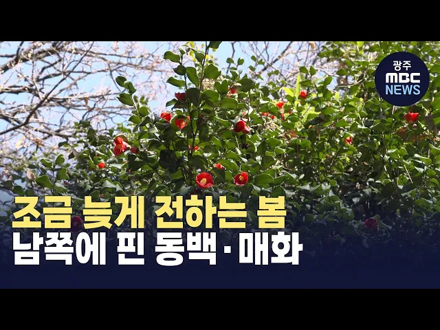 (앵커)지난달까지 이어진 추위에올해는 봄꽃이 조금 늦게 폈는데요.아직 다 피진 못했지만곳곳에서 꽃망울을 터뜨리며봄 소식을 전하고 있습니다.김단비 기자입니다.(기자)섬 전체가 동백나무 군락지인 여수 오동도입니다.초록 이파리 사이로 붉은 동백꽃이 수줍게 얼굴을 내밉니다.나무에 핀 동백도 탐스럽지만송이째 떨어...