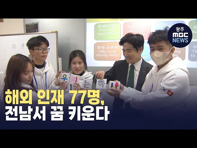 (앵커)학령 인구가 줄면서전남의 학교가 소멸 위기를 겪고 있습니다.전남교육청은해외 인재를 지역에서 교육해정착까지 지원하면서위기를 극복하겠다는 구상입니다.유민호 기자입니다.(기자)교실에 둘러앉아 놀이를 즐기는 학생들.손뼉을 치며 서툴지만 한국어로 우리 음식을 소개합니다.베트남과 쿠바, 인도네시아 등5개국...