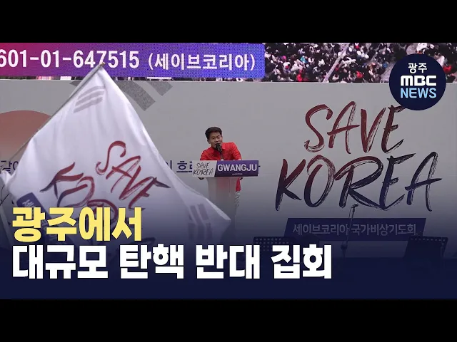 (앵커)광주에서는 오늘 대규모 탄핵 반대 집회가 열렸습니다.참가자들은 윤석열 대통령의 비상계엄을 옹호한다며 탄핵 반대를 외쳤습니다.바로 옆에서 윤석열 대통령 탄핵 찬성 집회에 참가한 광주 시민들은 참담하다는 심경을 드러냈습니다.김초롱 기자가 취재했습니다.(기자)광주 금남로 절반을 크고 작은 태극기가 가득 ...