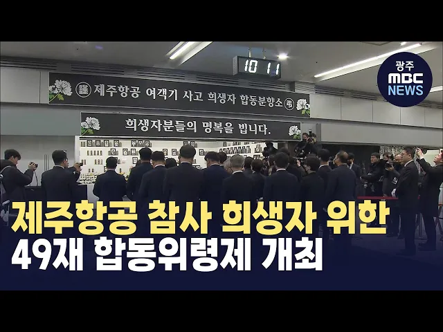 12.29 제주항공 여객기 참사 49재를 맞아 희생자를 추모하기 위한 행사가 열렸습니다.광주시와 전남도, 무안군은오늘(15일) 무안국제공항에서제주항공 참사 49재 합동위령제를 개최했습니다.이 자리에는 유가족 등 300여 명이 참석해,헌화와 분향, 추모사 낭독,종교별 추모식을 통해 희생자들을 기렸습니다.#1229제주항공여...
