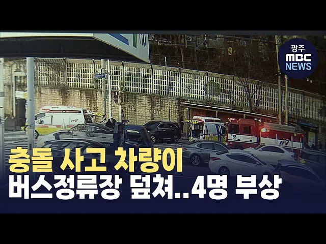 충돌 사고 차량이 버스정류장 덮쳐..4명 부상