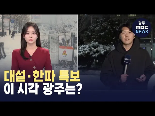 광주와 전남 지역에대설특보가 내려진 가운데앞으로도 많은 눈이 더 내리겠습니다. ***폭설과 한파로 인해도로가 빙판길로 변하면서시민들이 큰 불편을 겪었습니다. ***광주MBC가 기아 타이거즈 미국 전지훈련에 동행해외국인 선수들의 훈련 장면과 함께올 시즌 각오를 들어봤습니다. ***민신 8기 광주시의 대표 정책 중 하...