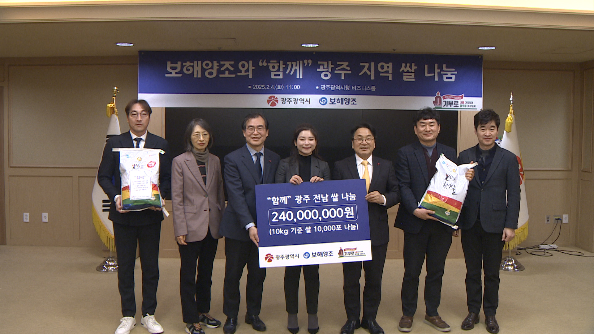 보해양조가 취약계층을 위해 써달라며광주시에 2억4천만 원을 기부했습니다.광주시는 기부금으로 10킬로그램짜리 쌀 1만포를 구입해사회복지시설과 저소득 가정 등에 전달할 예정입니다.보해양조는 어려운 이웃들을 지원하는 동시에 쌀값 하락으로 어려움을 겪는 지역 농민들을 돕기 위해 기부를 결정했다고 밝혔습니다.