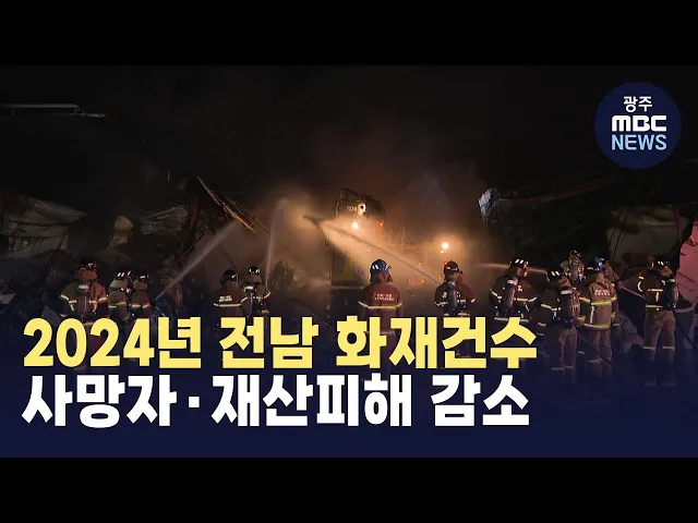 지난해 전남에서 발생한 화재건수와 사망자, 재산피해가 모두 감소한 것으로 나타났습니다.전남소방본부에 따르면 2024년 전남에서는 2천5백54건의 화재로 15명이 숨지고 76명이 다쳤으며2백68억천여만 원의 재산피해가 발생했습니다.이는 화재건수의 경우 전년보다 2.1% 감소했으며인명피해는 91명으로 같았지만 사망자가 ...