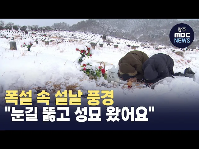 (앵커)설 당일인 오늘 광주와 전남 곳곳에는폭설과 강추위에도 불구하고, 성묘객들의 발길이 이어졌습니다.도로 곳곳에는 제설차량이 24시간 가동되는 등 안전한 귀경길을 위해제설작업을 벌였습니다.폭설 속 설날 풍경을 김영창 기자가 취재했습니다.(기자)밤 사이 내린 눈으로 광주시립묘지가 온통 하얗게 뒤덮였습니다....