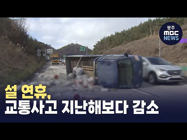 이번 설 연휴기간동안광주,전남에서 발생한 교통 사고가지난해보다 줄어든 것으로 나타났습니다.광주지방경찰청에 따르면설 연휴기간 하루평균 교통사고는 5.7건으로지난해 9.8건에 비해 42% 줄었고,부상자도 15.8명에서 6.2명으로 감소했습니다.전남 지역 교통사고도 같은 기간 하루 평균 58.8% 줄었고, 부상자도 64.7% 감...