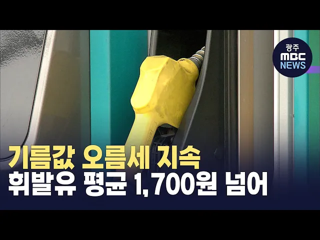 광주의 기름값이 지난해 10월 이후 오름세를 이어가면서휘발유 평균가격이 1리터에 1,700원를 넘어섰습니다.한국석유공사 유가정보시스템 오피넷에 따르면1월 4주차 기준으로 광주지역 주유소의 휘발유 평균 가격은1천7백10원으로 3주차 때 1천6백90원에 비해 20원 올랐습니다.전남의 경우도 국제유가 상승과 고환율의 영향...