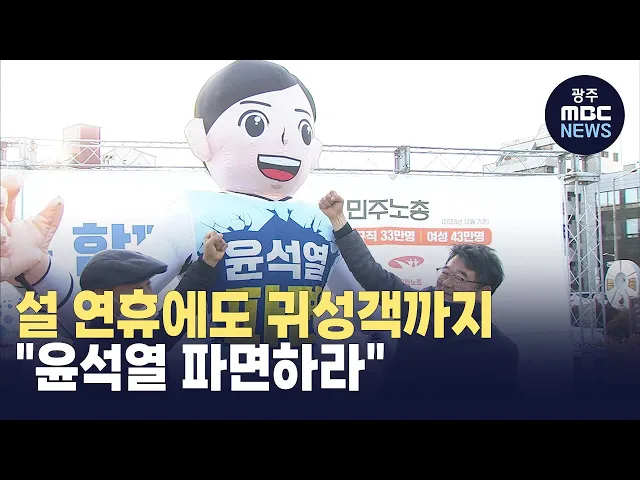 (앵커)설 연휴가 시작되는 날에도5.18 민주광장에서는대통령 탄핵과 즉각 퇴진을 촉구하는 목소리가 메아리쳤습니다.집회 참가자들은 내란 혐의를 받는 대통령과그 추종자들이 보이고 있는 최근의 행태를 성토했습니다.윤근수 기자의 보도입니다.(기자)매주 토요일이면 그래왔던 것처럼윤석열 대통령 퇴진을 외치는 시민들...