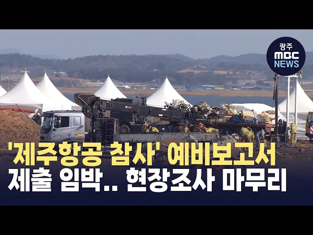 제주항공 여객기 참사 원인 규명에 나선 항공철도사고조사위원회가 사고 관련국과 국제민간항공기구에예비보고서 제출을 위한 현장 조사를이번주 마무리합니다.예비보고서는 국제민간항공협약에 따라 사고일로부터 30일 이내 제출해야 하는데, 사고조사위는 이를 위해 조만간 무안공항 관제 기록과 CCTV 확보, 현장 시료 채...
