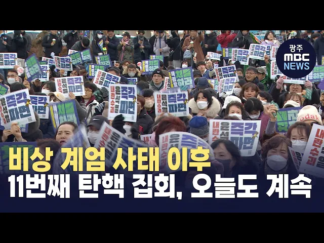 (앵커)대통령에 대한 사상 초유의 영장 실질 심사가 진행된 오늘,광주와 전남 곳곳에서는 윤석열 대통령의 탄핵을 촉구하는 토요 집회가 열렸습니다.비상 계엄 사태로 촉발된 토요 탄핵 집회는 벌써 11번째 입니다.이재원 기잡니다. (기자)80년 5월 시민들이 계엄군에 맞섰던 5.18 민주광장에 오늘도 어김없이 시민들이 다...