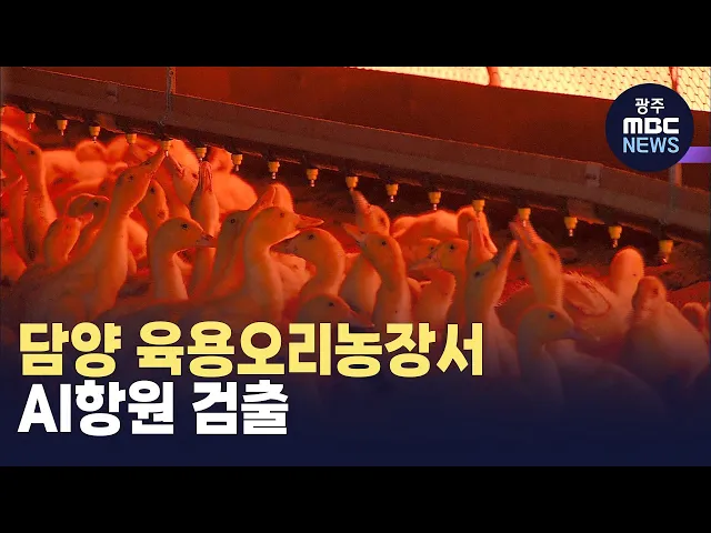 담양의 한 육용오리 농장에서 H5형 조류인플루엔자 항원이 검출돼 방역 당국이 역학조사에 나섰습니다.전라남도에 따르면 육용오리 만 2천여 마리를 사육하는 해당 농장의 출하 전 검사 과정에서 H5형 조류인플루엔자로 확인됐고, 고병원성 여부는 정밀검사를 거쳐 사흘 이내에밝혀질 것으로 보입니다.전라남도는 초동방역...