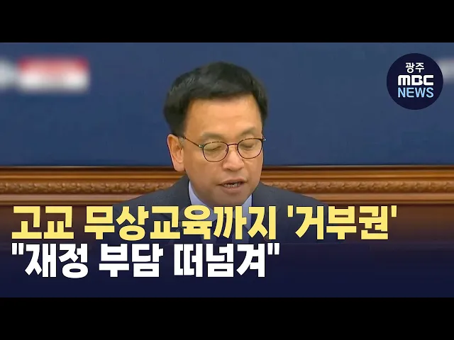 (앵커)최상목 경제부총리가 고교 무상교육 관련 법안에 거부권을 행사해 이대로 간다면 수백억에 달하는 관련 예산을 각 교육청이 떠안을 처지입니다.교육청은 교육 환경 개선에 쓸 돈이 줄어들 수 있다며 우려하고 있습니다.전주문화방송 허현호 기자입니다.(기자)대통령 권한대행인 최상목 경제부총리가 또다시 거부권을 ...