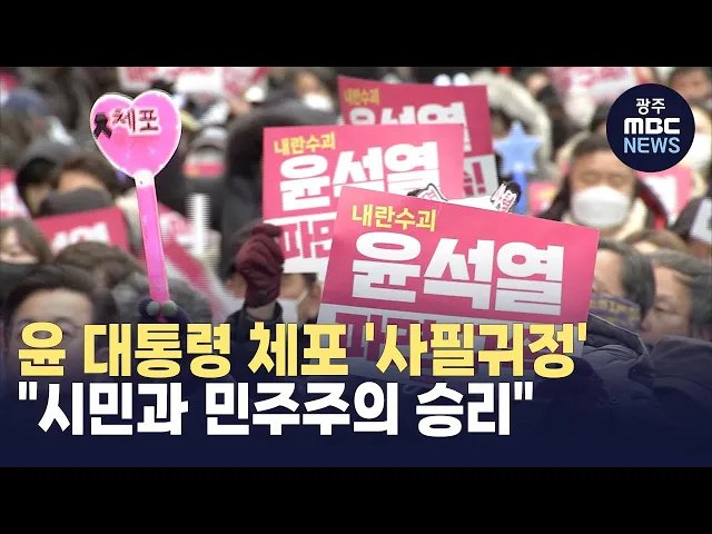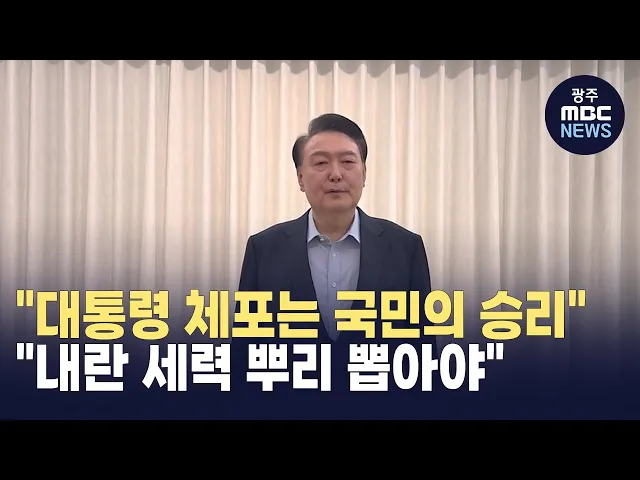(앵커)고위공직자범죄수사처가 체포 시도 두번째 만에 윤석열 대통령을 체포했습니다.이를 바로본 광주시민사회 등은국민이 승리했다며 환영했고,더 나아가 내란범죄 옹호 세력들에 대해선 엄벌을 촉구했습니다.보도에 김영창 기자입니다.(기자)내란 우두머리 혐의를 받는 윤석열 대통령의 체포 소식을 TV로 지켜본 시민들....