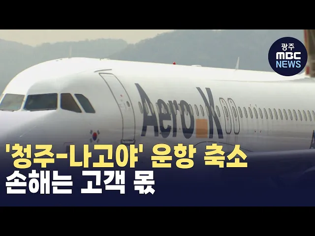 (앵커)청주국제공항과 일본 나고야를 오가는 정기 노선 취항을 앞두고 지난해 11월부터 항공권 예매가 진행 중입니다.그런데 취항을 20여 일 앞두고 항공사 측이 돌연 운항 축소를 통보하면서 이미 표를 산 여행객들이 피해를 호소하고 있습니다.MBC충북정재영 기자가 취재했습니다.(기자)저비용 항공사 에어로케이는 지난...