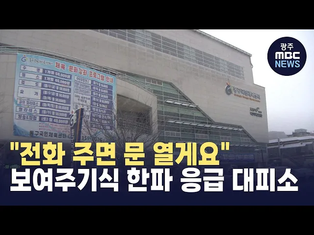 (앵커)추운 날씨에 취약계층이 몸을 녹일 수 있도록광주시는 '한파 응급 대피소'를 운영하고 있는데요.기본적인 난방 용품도 갖추지 못한 채 보여주기식으로 운영되는 곳이 대부분이었습니다.천홍희 기자가 보도합니다.(기자)광주 동구에 있는국민체육센터.한파에 취약계층이 몸을 녹일 수 있는 한파 응급대피소입니다.대피...