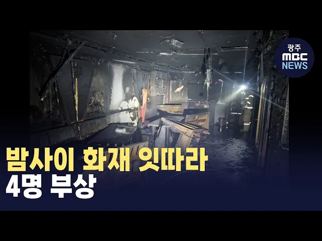 밤사이 화재가 잇따라주점 손님과 주민 등 4명이 다쳤습니다.오늘 오전 2시 10분쯤목포시 보광동의 한 유흥주점에서 불이나룸에 있던 남성 2명과 여성 1명 등 3명이 화상을 입어 병원에서 치료를 받고 있습니다.광주시 북구 신안동 한 빌라 2층에서도오전 2시 52분쯤 불이나 거주하던 30대 남성이 유독가스를 마셔병원으로 ...