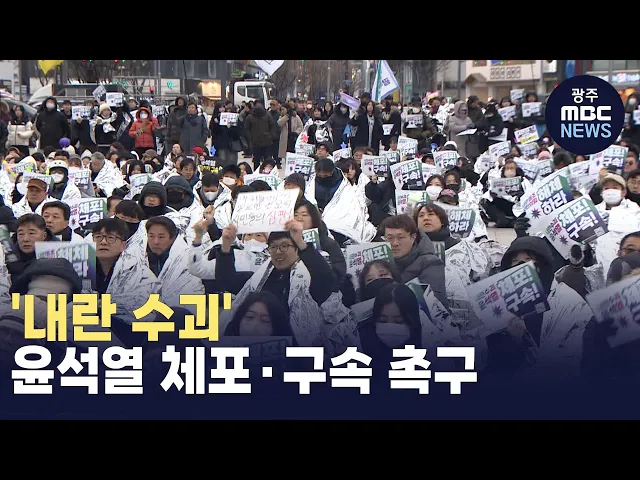 내란 수괴 윤석열 대통령의 즉각적인 체포와구속을 촉구하는광주 시민들의 총궐기대회가 오늘도 계속됐습니다.광주 비상행동이 5.18 민주광장에서 주도한광주시민 총궐기대회에 참석한 시민들은내란수괴 윤석열 대통령과 그 일당들이감옥에 보내지는 그 날까지투쟁의 선봉에서 싸우겠다고 밝혔습니다.참석자들은 또내란 세...