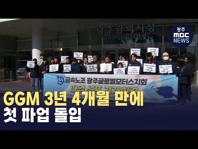 광주글로벌모터스 노조가 공장 가동을 시작한 지 3년4개월만에 첫 파업에 들어갔습니다.금속노조 GGM지회는 오늘(10) 간부 20여 명이4시간 부분 파업을 시작한 데 이어다음주부터는 부서별로 돌아가며순환 파업을 진행하기로 했습니다.GGM노조는 파업 선포 기자회견에서사용자와 광주시, 그리고 주주단이노사 상생협정서를 ...