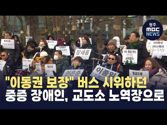 (앵커)장애인 이동권 보장을 요구하며 버스 탑승 시위를 벌인 장애인 단체 회원들이교도소에서 노역형을 살게 됐습니다.중증 장애로 혼자서는 움직일 수도 없어서노역은 커녕 교도소 생활 자체가 어렵지만,이동권 요구 집회는 정당했다며벌금 대신 노역형을 선택한 겁니다.MBC충북김은초 기자가 보도합니다.(기자)지난 2022...