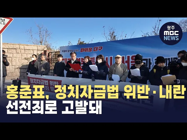 (앵커)한 시민단체가 홍준표 대구시장이 내란 행위를 옹호했다며 검찰에 고발했습니다.홍 시장은 명태균 게이트와도 연루됐다는의혹을 받고 있는데요.이 또한 정치자금법 위반 혐의로 고발장에 추가됐습니다.대구문화방송박재형 기자가 보도합니다.(기자)대구 참여연대가 차기 대선 출마를 공식화한 홍준표 대구시장을 정치...