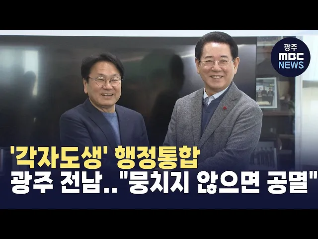 (앵커)최근 전국적으로 행정구역 통합 논의가급물살을 타고 있습니다.광주 전남도도 지난 2020년부터행정통합 논의가 시작됐지만민선 8기 들어 한 발자국도 나아가지못하고 있는 게 현실입니다.행정 통합보다는 서로 다른행보를 보이고 있는 게 사실인데요.송정근 기자입니다.(기자)광주와 전남도 통합논의가 없었던 건 아...