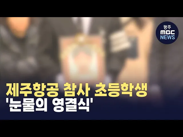 제주항공 참사로 희생된 초등학생의 영결식이 오늘 광주의 한 초등학교에서 엄수됐습니다.영결식에는 유가족과 광주시교육청, 해당 학교 관계자, 마을 주민등이 참석해희생자의 넋을 기리며 애도했습니다.한편 제주항공 참사로광주와 전남, 전북 등 5개 지역에서는11명의 초*중*고 학생들이 숨졌습니다. #영결식 #제주항공...