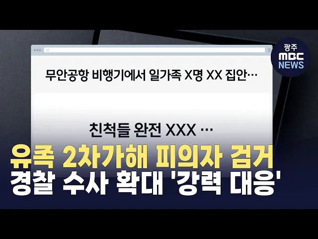 (앵커)제주항공 여객기 참사 희생자와 유족을 향한 2차 가해가 도를 넘고 있습니다.전담 수사단을 꾸린 경찰은 무관용 원칙을천명하고 피의자 1명을 검거하는 등 수사를 확대하고 있습니다.김규희 기자가 보도합니다.(기자)지난 31일 한 인터넷 커뮤니티에 올라온 게시글입니다.참사로 숨진 일가족의 사례를 들며 보상금을...