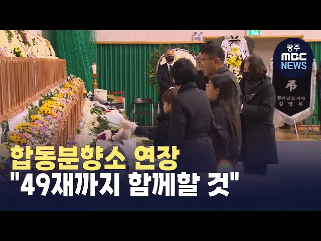 제주항공 여객기 참사에 따른 국가 애도 기간이 끝났지만,추모의 발길이 계속되고 있습니다. ***광주와 전남지역 분향소는유족들의 요청에 따라49재까지 연장 운영됩니다. ***이번 참사로 숨진 조종사와 승무원 등을추모하는 사연들도가슴을 먹먹하게 하고 있습니다.***탄핵 정국으로 어수선한 가운데국회의원과 시의원들에...
