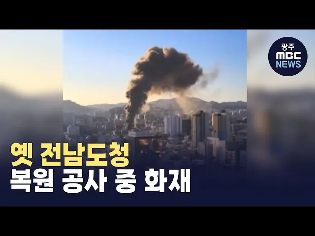 (앵커)복원 공사가 진행 중인 옛 전남도청 건물에 오늘 오전 불이 났습니다.불이 난 곳은 80년 5.18 때 광주시민들이 계엄군에 맞서 최후의 항전을 벌였던 곳이자 제주항공 여객기 참사 분향소에서 100미터도 떨어지지 않은 곳이었습니다.박수인 기자가 보도합니다.(기자)광주 도심 한가운데서 시커먼 연기가 솟아오릅니다....