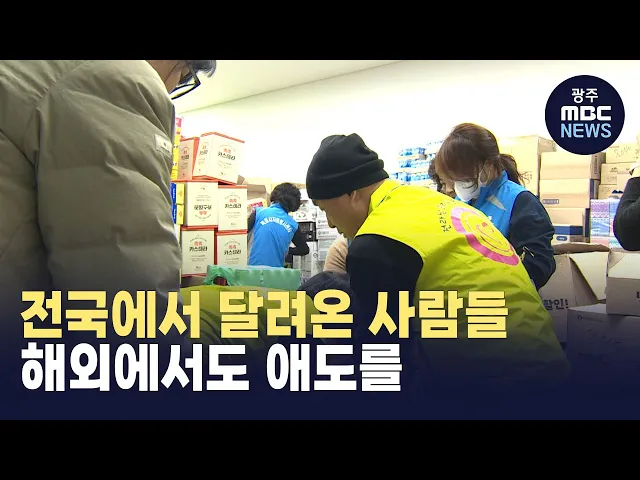 (앵커)참사를 애도하는 추모 물결은 해외에서도예외가 아닙니다.화환을 보내 마음을 더하고 있고,전국 각지에서는 자원봉사자들이 무안공항을 찾고 있습니다.허연주 기자가 취재했습니다.(기자)추모 인파가 끝없이 이어지고 있는 무안공항.서울에 사는 대학생인 이건우 씨는참사 소식을 듣자마자 취업준비도 잠시 접어두고 ...