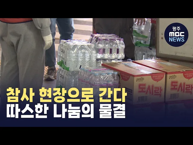 (앵커)제주항공 여객기 참사 현장에는자원봉사자들이 자리를 떠날 수 없는 유가족들과 함께 하고 있습니다.전국 각지에서 보내온 구호 물품들도속속 도착하고 있습니다.최다훈 기자입니다.(기자)자원봉사자들이 화물차에서상자를 꺼냅니다.전국 각지에서 도착한 구호 물품입니다.생수부터 음식까지,더 빨리 전달하기 위해 ...