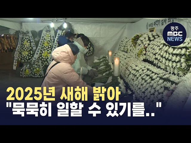 (앵커)2025년 새해가 밝았습니다.슬픔이 가득했던 지난해를 보낸 지역민들은새해에는 좋은 일만 있기를 소망하고 있습니다.천홍희 기자가 보도합니다.(기자)제주항공 여객기 참사 희생자를 기리는광주 합동 분향소.시민들은 송년회를 여는 대신이곳을 찾았습니다.벌써 1만 명에 가까운 시민들이 분향소를 다녀갔습니다.* 김...