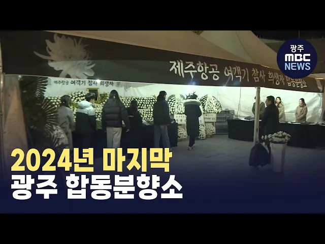 (앵커)슬픔이 가득했던 2024년도얼마 남지 않았습니다.광주 5.18민주광장에는제야의종 행사 대신 제주항공 여객기 참사 희생자를 위한 합동 분향소가 차려져 있습니다.현장에 나가있는취재기자 연결합니다.천홍희 기자! 현장 분위기가 어떻습니까?(기자)네 이곳 광주 합동분향소에는늦은 시간까지 추모의 발길이 이어지고 ...