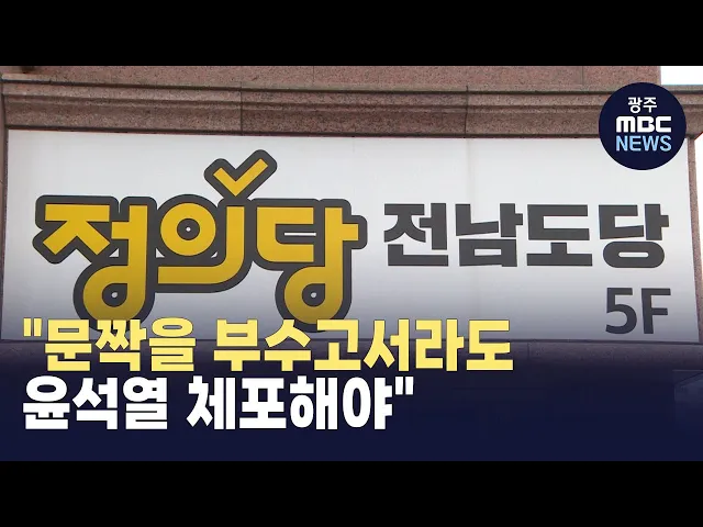 윤석열 대통령에 대한체포영장이 발부된 것과 관련해정의당 전남도당이 공수처에단호한 영장 집행을 촉구했습니다.정의당 전남도당은"가능하다면 체포영장 집행 시기를시민들에게 공유해줘도 좋다,시민들이 함께할 것"이라며"문짝을 도끼로 부수고서라도윤석열 대통령을 반드시 체포하라"고밝혔습니다.