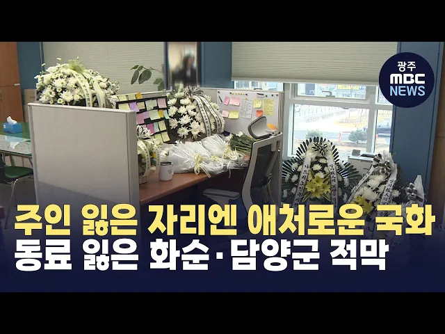 (앵커)이번 참사 희생자엔공직자가 14명 포함됐는데요특히 4명의 동료를 한꺼번에 잃은 화순군청은적막 속 흐느낌만 흘러 나왔습니다.주현정 기자입니다.(기자)주인 잃은 책상 위에는 애처로운 국화만 수북하게 쌓여 있습니다.이미 많은 꽃들이 쌓였지만, 국화를 포개고, 포개는 추모는 계속됐습니다.허무하게 희생된 동료...