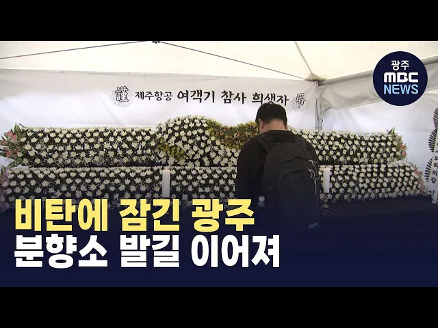 (앵커)참사가 발생한 무안공항 인근에는 합동 분향소가 마련됐습니다.사고 희생자들을 넋을 기리기 위한시민들의 추모 물결이 이어지고 있습니다.서일영 기자가 취재했습니다.(기자)신원이 확인된 참사 희생자들의 위패 앞.적막속에 하얀 국화꽃들이 쌓여갑니다.비보에 흐르는 눈물을 참지 못합니다.* 박정하 / 광주광역시 ...