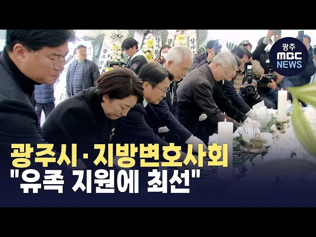 (앵커)이번에 참사가 발생한제주항공 여객기 탑승자 가운데광주에 주소를 둔 탑승자가가장 많았는데요.광주시와 지역 변호사회가유가족들을 위해장례지원과 함께 법률지원에나서기로 했습니다.송정근 기자입니다.(기자)이번에 참사가 발생한제주항공 여객기에 타고 있던탑승객과 승무원 181명 가운데81명이 광주에 주소지지...