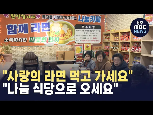 (앵커)요즘 세상에 누가 그럴까 싶지만한끼 식사를 제때 챙겨먹지 못하는 이들이아직도 우리 주변엔 적지 않습니다.이런 취약 계층들에게 따뜻한 라면을 무료로 제공하는 식당이 있는데요.듣기만 해도 훈훈해지는 얘기를김영창 기자가 소개합니다.(기자)점심 시간이 되자 동네 어르신들이 식당으로 몰려듭니다.매운라면부터...