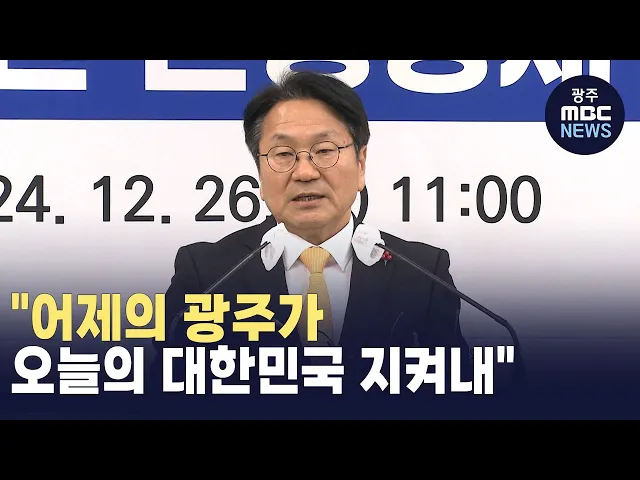 강기정 광주시장이 송년 기자회견을 열고올해는 어제의 광주가 오늘의 대한민국을지켜낸 한 해였다고 평가했습니다.강 시장은 내란 세력에 대한 철저한 단죄를 통해 다시는 같은 일이 반복되지 않도록 역사의 교훈으로 남겨야 할 뿐 아니라 법률로 제도화하고 헌법에 명문화돼야 한다고 강조했습니다.그러면서 5.18 정신 헌...