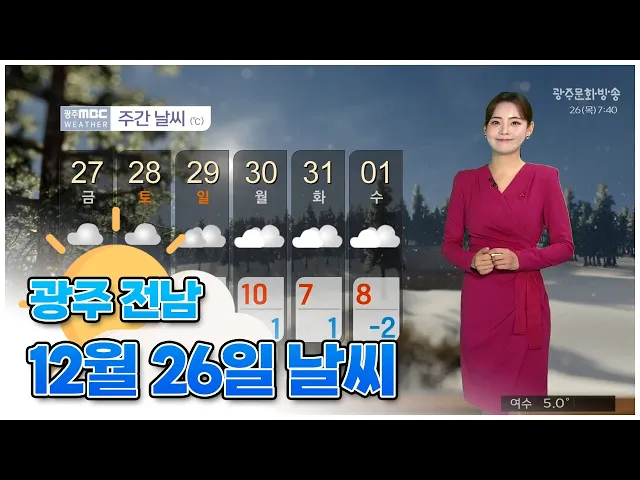 오늘 출근길 무렵까지는 큰 추위 없겠지만,낮부터는 날이 점차 추워지겠습니다.아침기온은 2도 안팎으로어제보다 3도 가량 높게 출발한 가운데,한낮기온 6도에 그치면서어제보다 2-3도 낮겠고요.오늘 광주와 전남 대부분 지역에서55km/h의 찬바람이 불면서더 춥게 느껴질 수 있겠습니다.현재 하늘 모습 보시면종일 구름 많...
