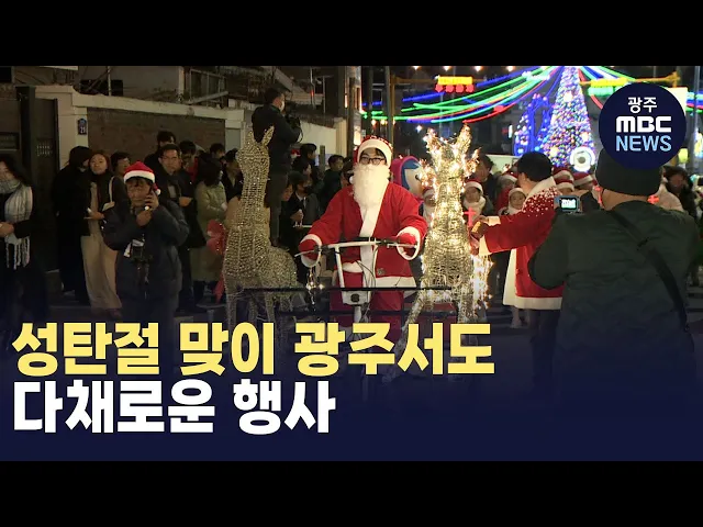 (앵커)12.3 내란 사태로 정국이 어수선한 와중에도성탄절이 하루 앞으로 다가왔습니다.광주 5개 구청장들이 얼어붙은 지역 경제를 살리자고 호소했던 만큼, 지역에서도 성탄절 맞이 행사가한창입니다.천홍희 기자가 취재했습니다.(기자)루돌프 마차를 탄 산타를 선두로 거리 행진이 시작됩니다.십자가와 촛불을 든 아이들이...