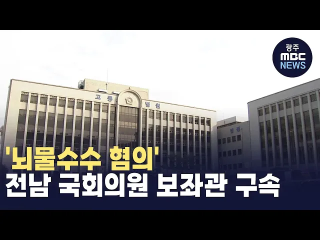전남 서부권 지역 국회의원의 보좌관이 뇌물수수 혐의로 구속됐습니다광주지법 최유신 영장 전담 부장판사는국회의원 보좌관 50대 남성 황모씨에 대해뇌물수수 혐의로 검찰이 청구한 구속영장을 발부했다고 밝혔습니다.더불어민주당 소속 전남 서부권 지역의 국회의원 보좌관인 황 모 씨는 지역업자로부터 뇌물 성격으로 수...