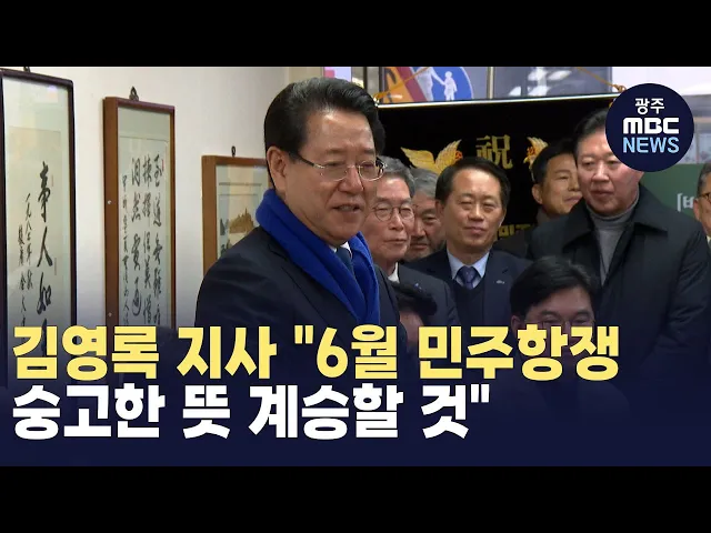 김영록 지사가 6월 민주항쟁의 숭고한 뜻을계승하겠다는 의지를 다졌습니다.김 지사는 어제(21) 광주에서원각사 6월민주항쟁기념비 건립위원회 사무실 개소식에 참석해 "기념비는 대한민국 민주주의 역사에 큰 의미를 지닌 원각사와 당시 열사분들을 기리기 위한 것"이라고밝혔습니다.원각사 6월항쟁기념비는 6월 민주화운...