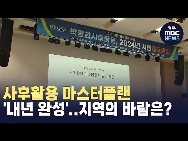 (앵커)여수광양항만공사는세계박람회장 사후활용 구상이 담긴최종 마스터플랜을 내년에 확정합니다.이와 관련해 최근 여수지역사회는 내년부터 2027년까지 '3년의 3대 과제' 실현을 기치로,박람회장 사후활용에 대한 지역의 여망을 제시했습니다최우식 기자가 보도합니다.(기자)2012여수세계박람회 정신을 계승하는여수선언...