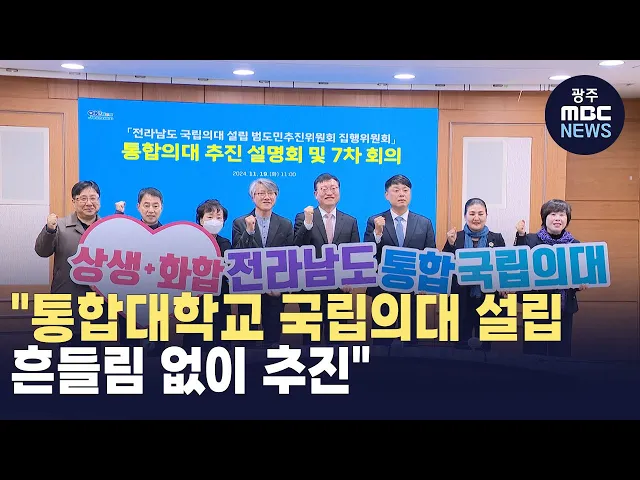 비상계엄과 탄핵으로 정국이 혼란스러운 가운데 전남도가 "통합대학교 전남 국립의대설립을 흔들림 없이 추진하겠다"고 밝혔습니다.전남도에 따르면목포대와 순천대 총장을 공동위원장으로 하고대학 구성원 대표 24명으로 구성된대학통합 공동 추진위원회가 지난달 27일 출범해 매주 1-2회 모여 통합방안을 논의하고 있으며...