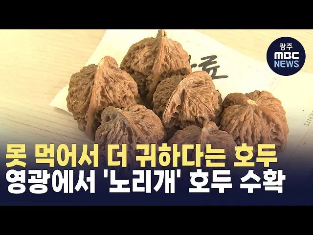 (앵커)불포화지방산이 풍부해 뇌 건강에 좋다는 호두는 그 주름진 형태 역시사람의 뇌와 닮았죠.그래서 섭취만큼이나 손 노리개, 지압용으로 사용하는 분도 많은데요.전남 영광에서도 이 지압용 호두가 수확되기 시작됐습니다.주현정기자가 다녀왔습니다. (기자)가을걷이를 선별하는 농부의 손이 분주합니다.깊은 주름 골이...