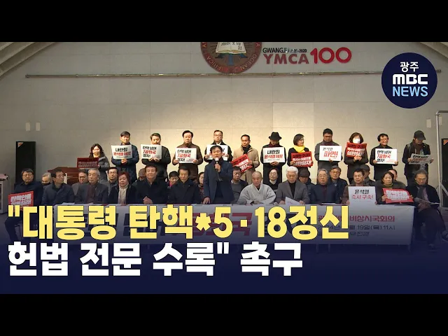 광주·전남 시민사회와 5·18단체가 5·18정신의 헌법 전문 수록과 헌법재판소의 윤석열 대통령 탄핵 인용을 촉구했습니다.광주·전남 25개 시민단체와 5·18단체로 구성된 '광주·전남 비상시국회의'는 어제(19) 기자회견을 열고"한덕수 권한대행과 국회는 공석인 헌법재판관 3명을 신속히 임명하고 헌재 역시 탄핵을 인용하라"...