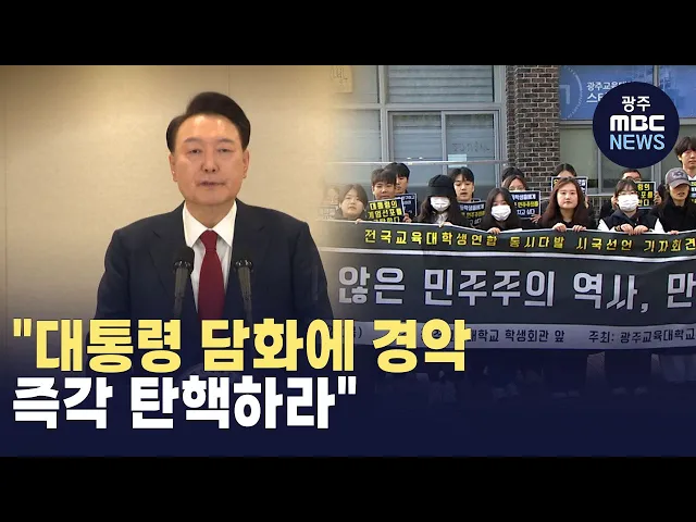 (앵커) 대통령의 담화에 정치권 뿐만 아니라 지역민들도 크게 분노했는데요.학생들과 시민, 그리고 시민단체 등은이번 담화는 "국민에 대한 전쟁 선포"라며대통령의 즉각적인 퇴진과탄핵을 촉구했습니다.김영창 기자의 보도입니다.(기자)윤석열 대통령의 대국민 담화를 생중계로 지켜보던 시민들은 경악을 금치 못했습니다....