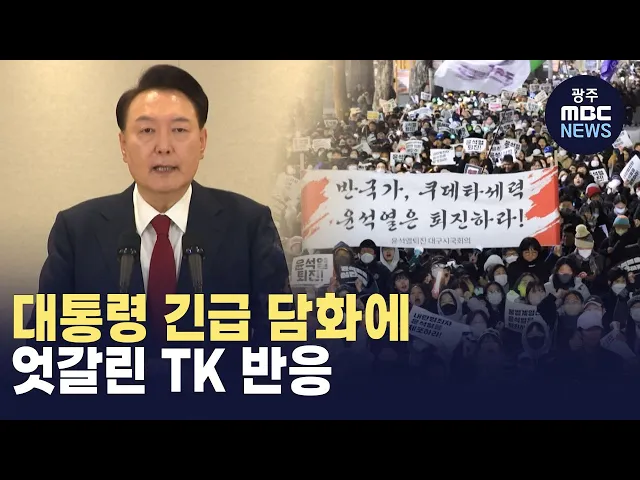 (앵커)'2시간짜리 내란이라는 게 있냐, 질서 유지를 위해 소수의 병력을 잠시 투입한 게 폭동이냐.'나흘 간의 칩거를 깨고 어제 다시 국민들 앞에 선 윤석열 대통령의 말입니다.계엄 선포는 헌법적 통치행위였고 야당의 독재를 막기 위해 불가피했다는 겁니다.대구경북 민심은 어떨까요?대구·경북 시민들 생각을대구문화방...
