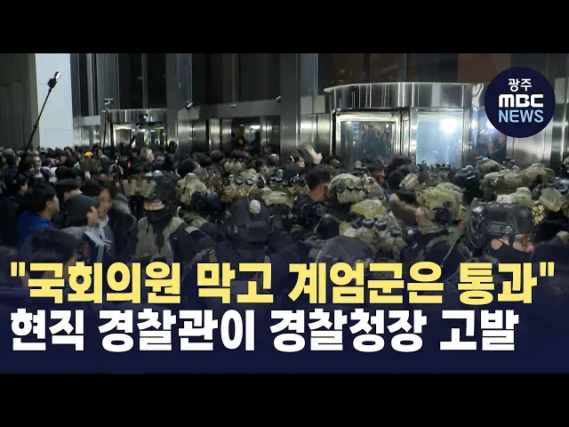 (앵커)그런가 하면 지난 3일밤 비상계엄 당시 경찰이 국회 출입을 전면 통제하면서계엄군은 아무런 제재 없이 들여보내는 영상이확보됐습니다.시민들은 국회로 들어가는 계엄군을 맨몸으로 막아서면서본회의가 열릴 때까지 버텼는데요.충북의 현직 경찰관이경찰청장과 수뇌부를 내란죄 공범으로공수처에 고발했습니다.MBC충...